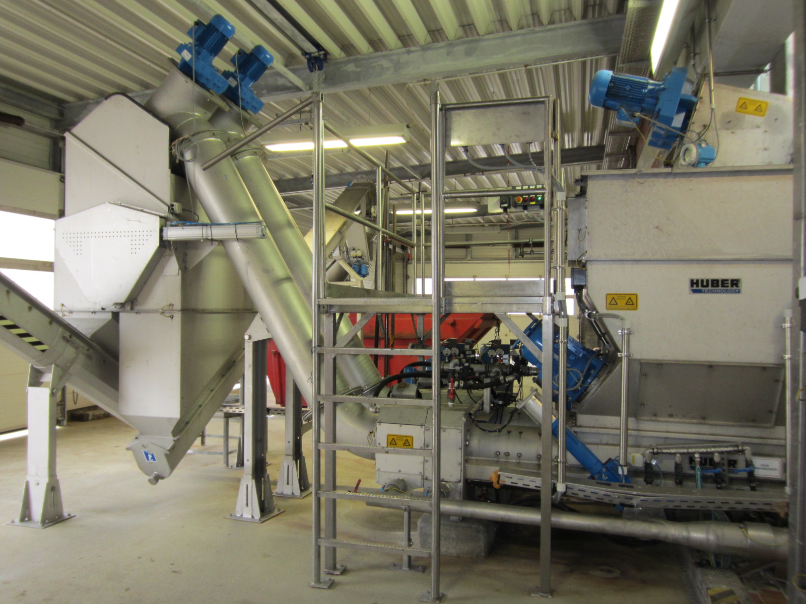 Spesielt slitesterkt og solid materiale i den koniske høytrykksenheten sikrer pålitelig drift av anlegget over lengre tid. Pressvannet fra komprimeringen av renseavfallet samles opp under høytrykksenheten og slippes ut sammen med vaskevannet, som er rikt på karbon.